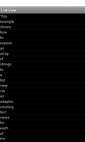 This example shows how to use an adapter to display an array of strings in a ListView. An alternative form of this example that uses lists instead of arrays can be found in the Examples/StringListView directory.